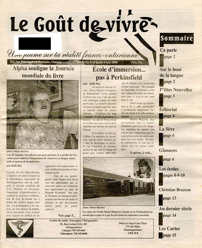Le Goût de vivre (Vol.28 No.08) – 20 avril 2000