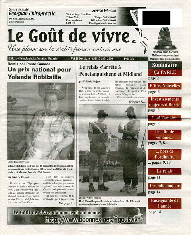 Le Goût de vivre (Vol.28 No.16) – 17 août 2000