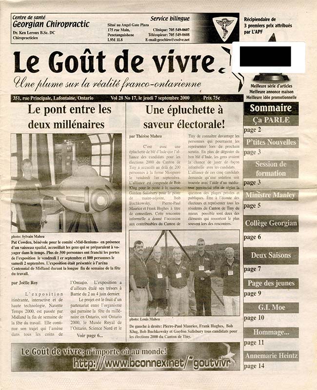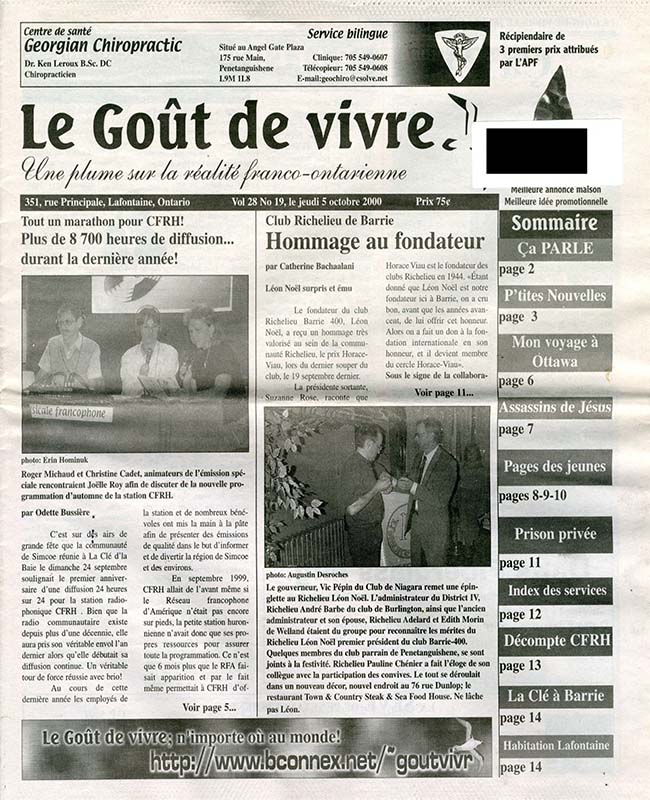 Le Goût de vivre (Vol.28 No.19) – 5 octobre 2000