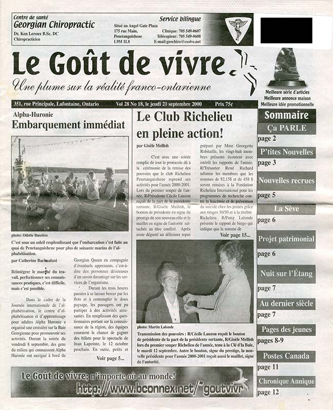 Le Goût de vivre (Vol.28 No.18) – 21 septembre 2000