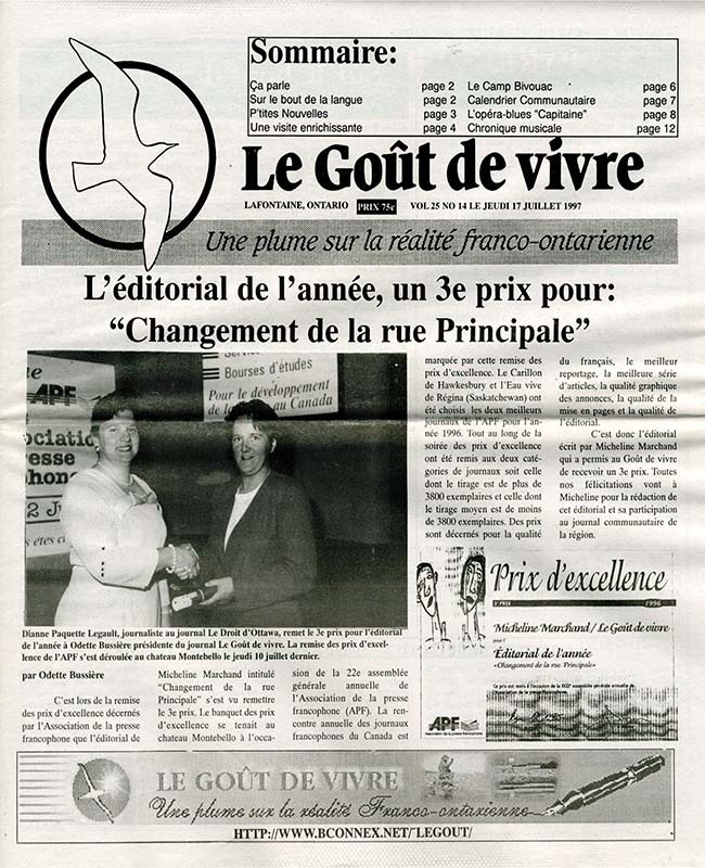 Le Goût de vivre (Vol.25 No.14) – 17 juillet 1997