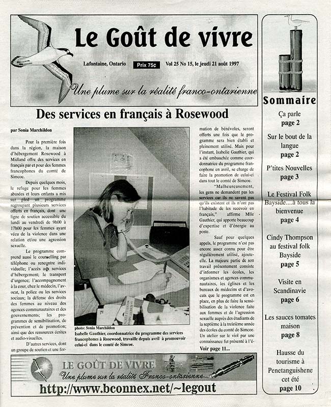 Le Goût de vivre (Vol.25 No.16) – 21 août 1997