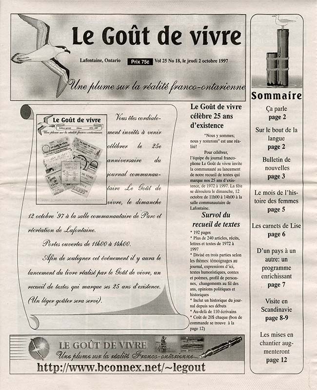 Le Goût de vivre (Vol.25 No.19) – 2 octobre 1997