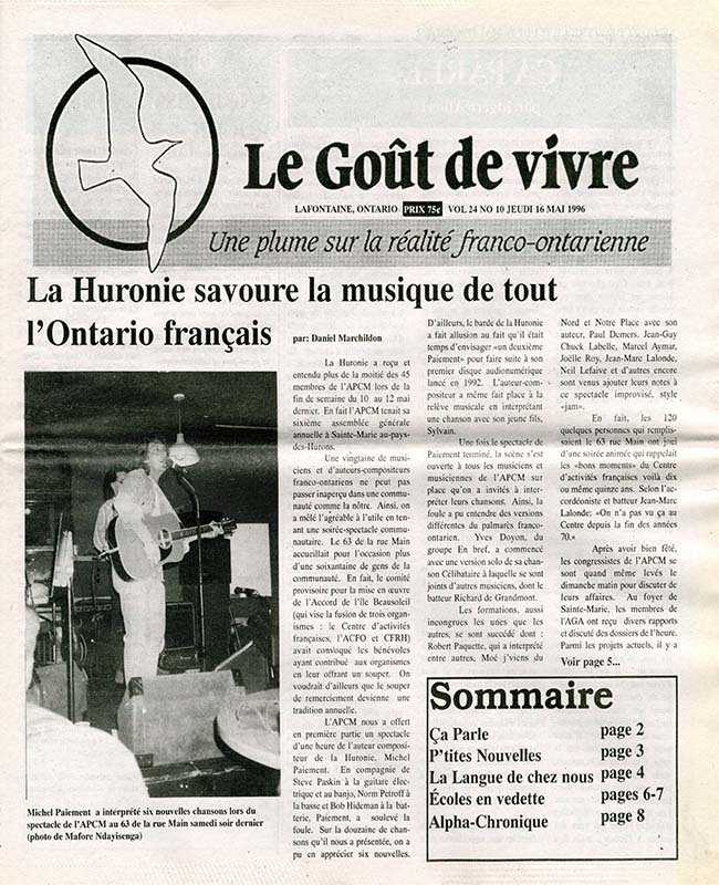 Le Goût de vivre (Vol.24 No.09) – 2 mai 1996