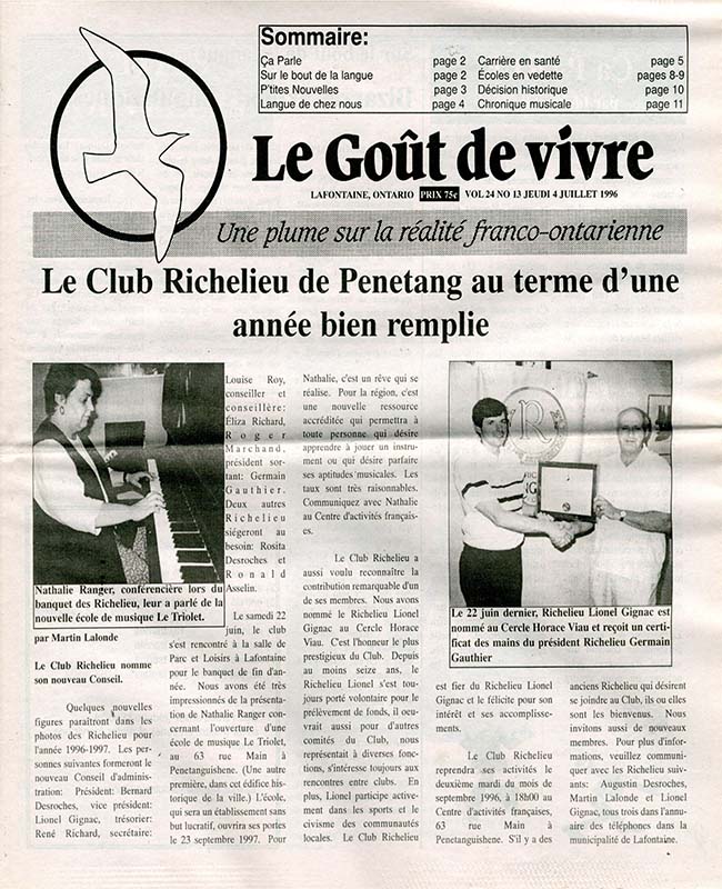 Le Goût de vivre (Vol.24 No.13) – 4 juillet 1996