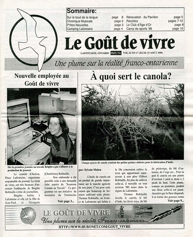 Le Goût de vivre (Vol.24 No.16) – 15 août 1996