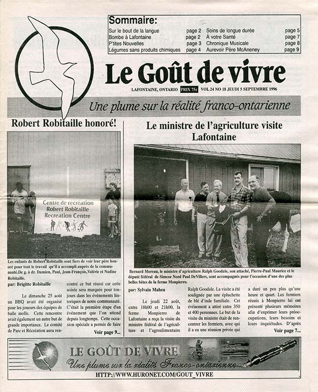 Le Goût de vivre (Vol.24 No.14) – 18 juillet 1996