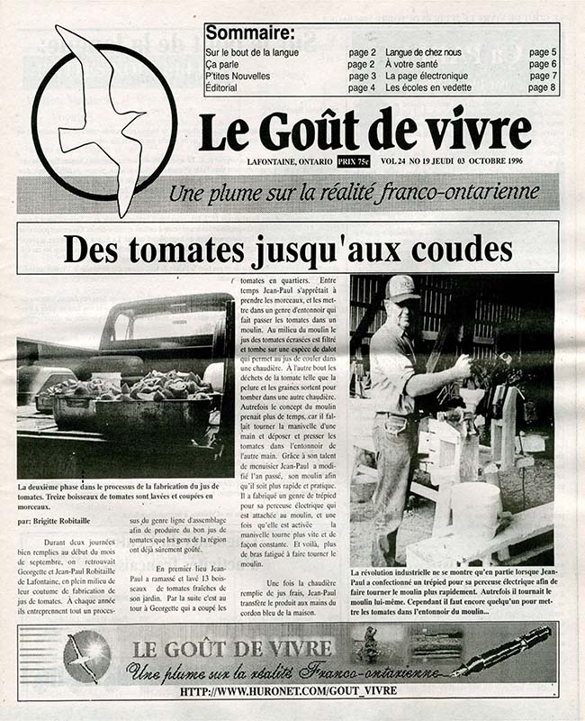 Le Goût de vivre (Vol.24 No.19) – 3 octobre 1996