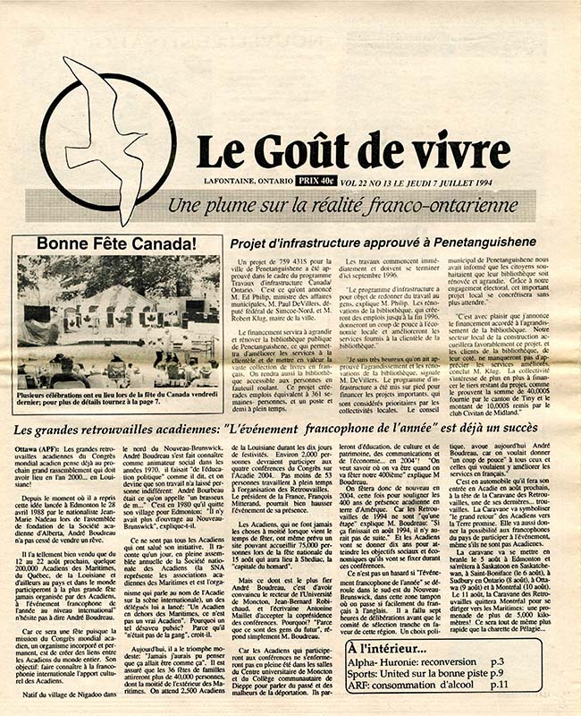 Le Goût de vivre (Vol.22 No.13) – 7 juillet 1994