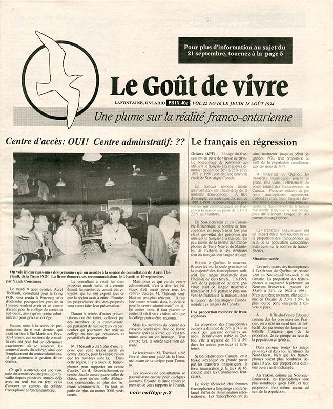Le Goût de vivre (Vol.22 No.16) – 18 août 1994