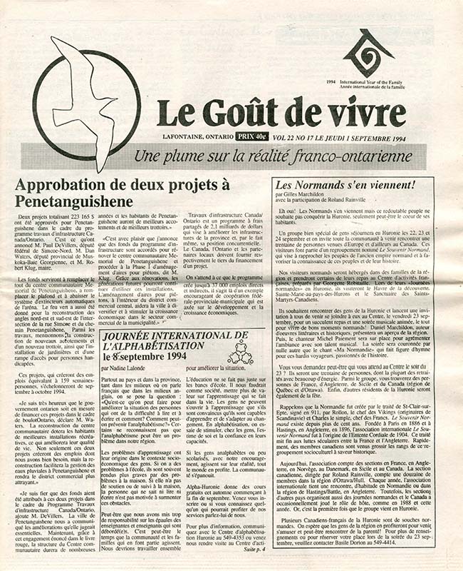 Le Goût de vivre (Vol.22 No.17) – 1 septembre 1994