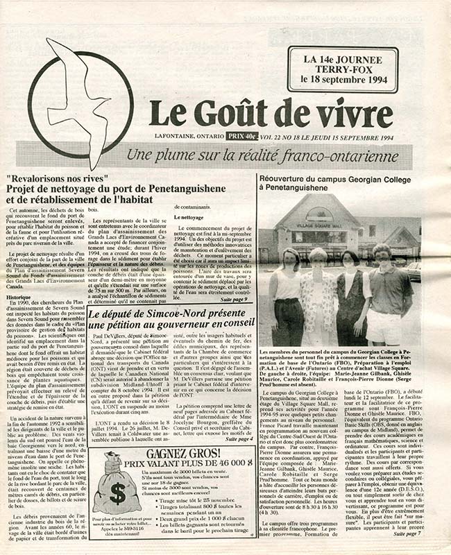 Le Goût de vivre (Vol.22 No.18) – 15 septembre 1994