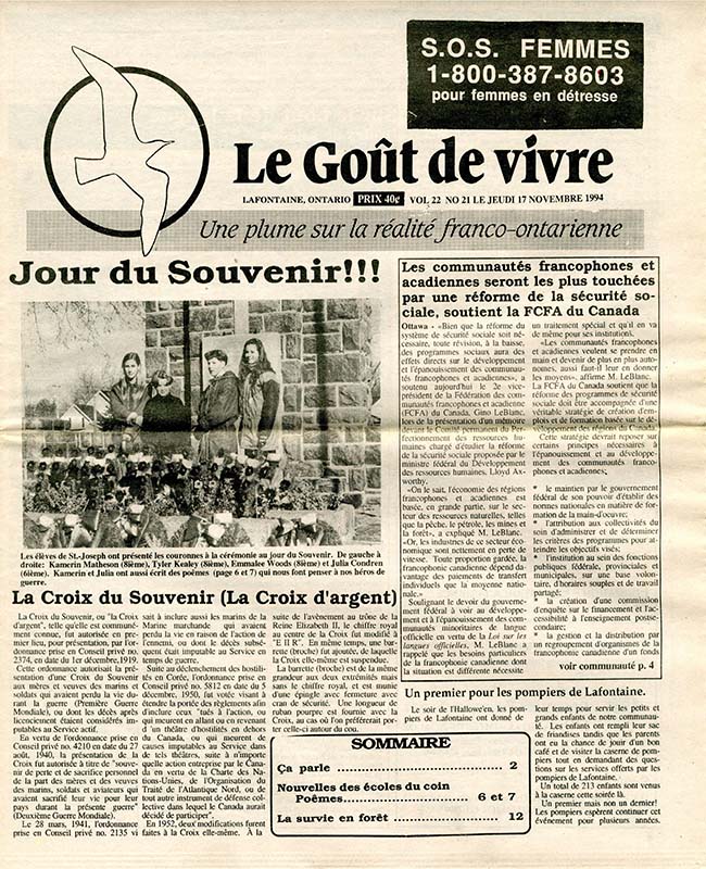 Le Goût de vivre (Vol.22 No.22) – 17 novembre 1994
