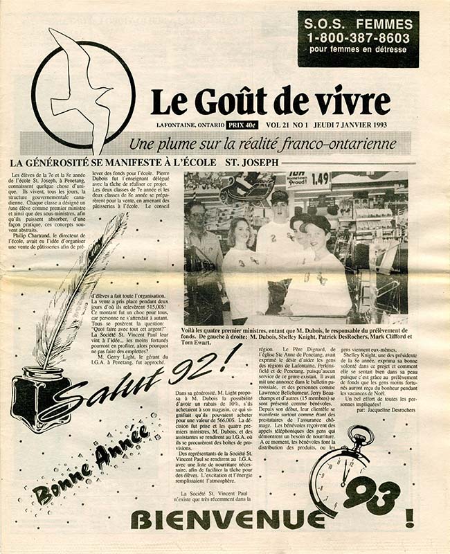 Le Goût de vivre (Vol.21 No.01) – 7 janvier 1993