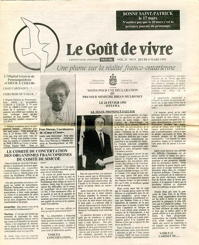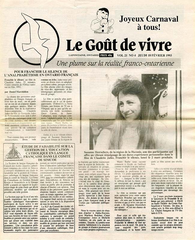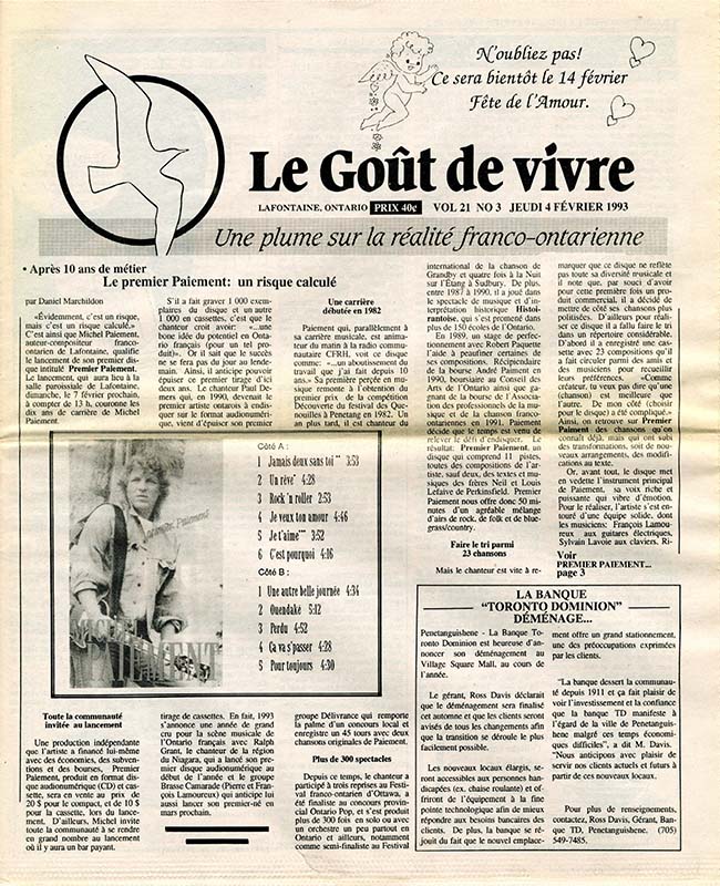 Le Goût de vivre (Vol.21 No.04) – 18 février 1993