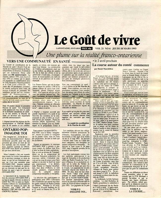 Le Goût de vivre (Vol.21 No.06) – 18 mars 1993