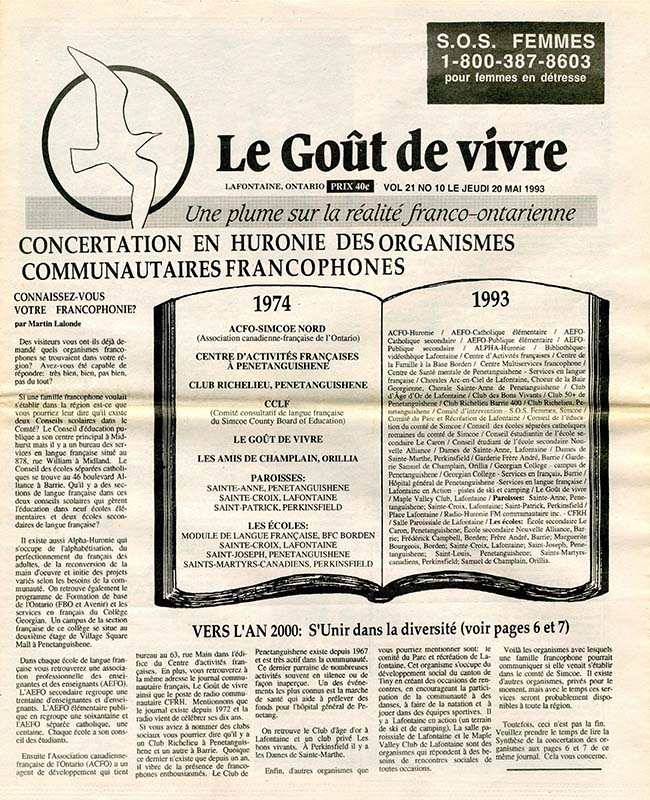 Le Goût de vivre (Vol.21 No.10) – 20 mai 1993