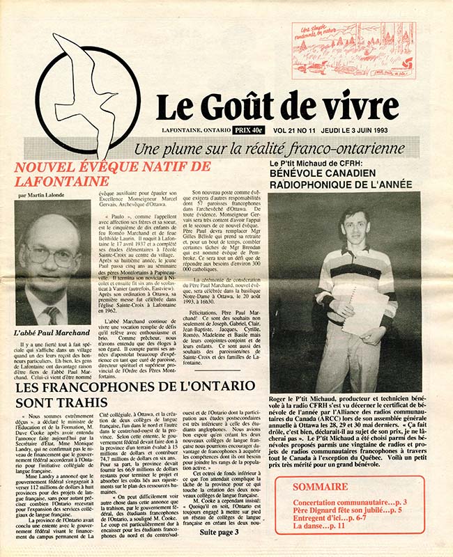 Le Goût de vivre (Vol.21 No.11) – 3 juin 1993