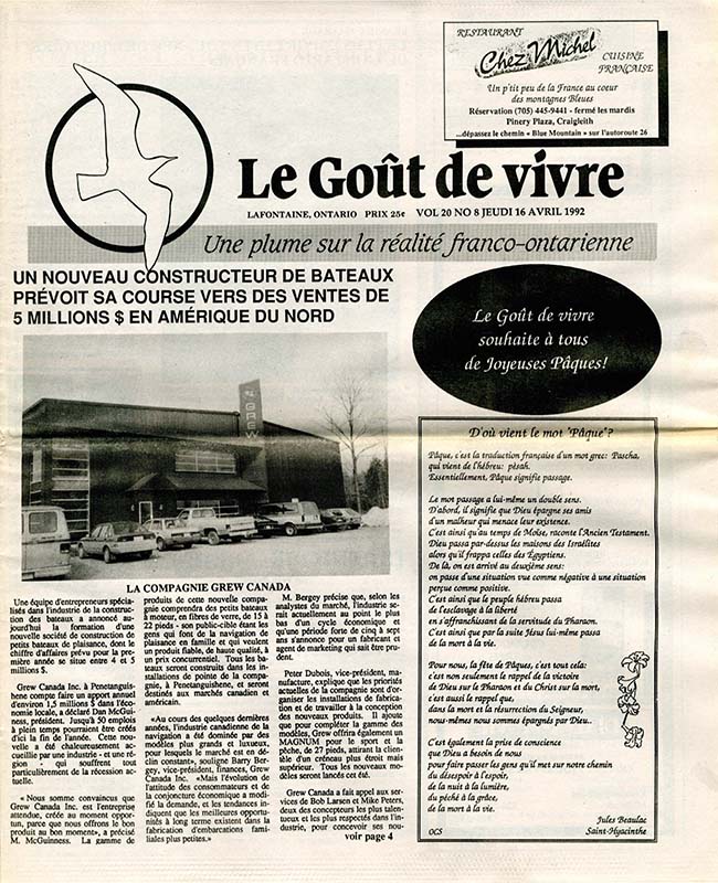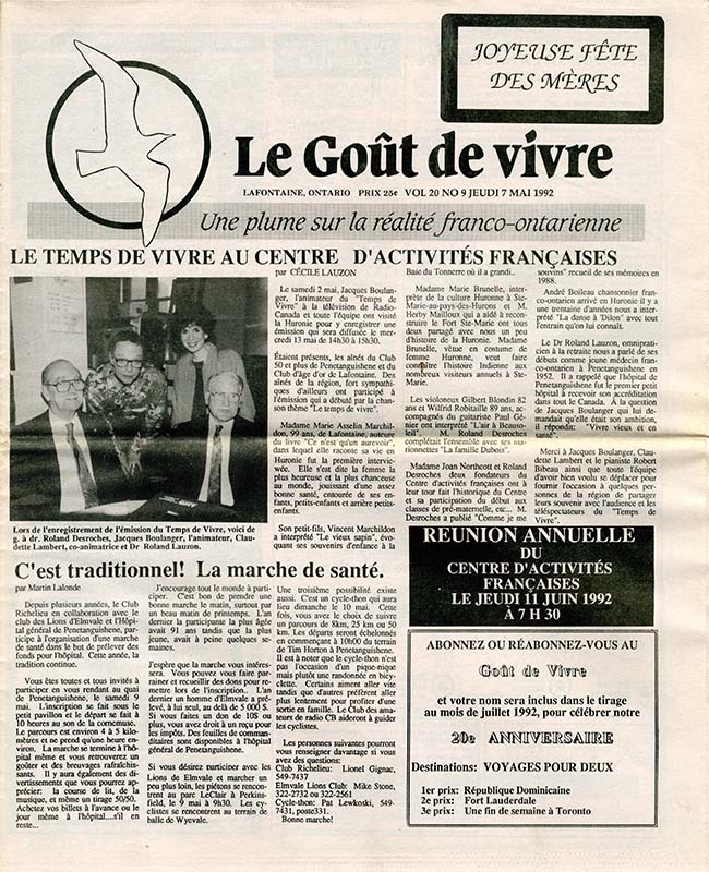 Le Goût de vivre (Vol.20 No.07) – 2 avril 1992