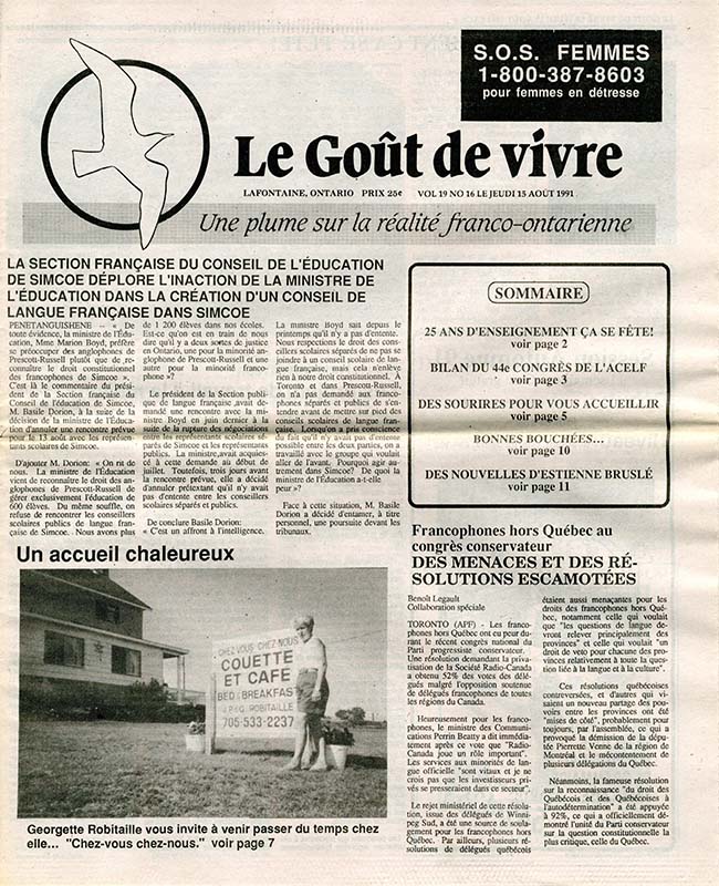 Le Goût de vivre (Vol.19 No.16) – 15 août 1991