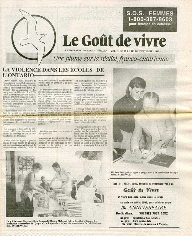 Le Goût de vivre (Vol.19 No.17) – 5 septembre 1991