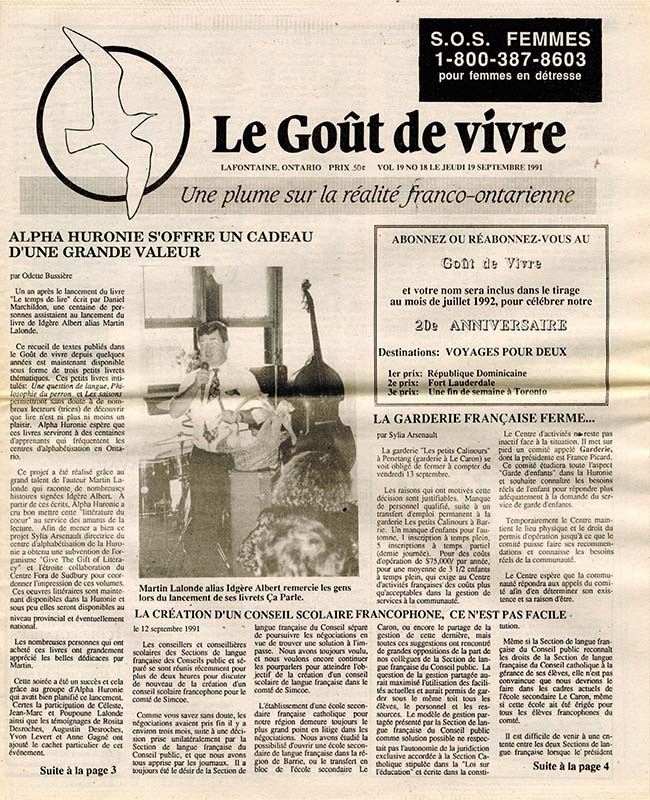 Le Goût de vivre (Vol.19 No.18) – 19 septembre 1991