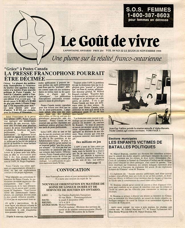 Le Goût de vivre (Vol.19 No.21) – 7 novembre 1991