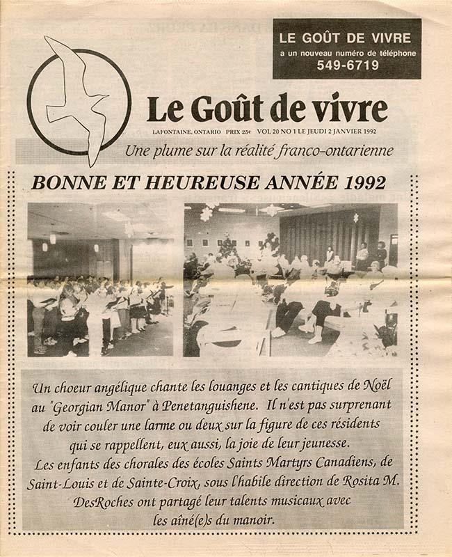 Le Goût de vivre (Vol.20 No.01) – 2 janvier 1992