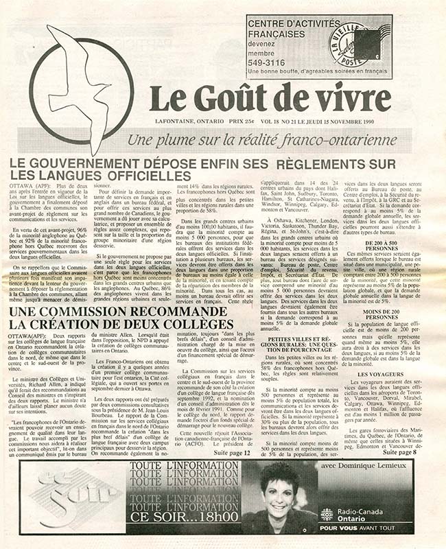 Le Goût de vivre (Vol.18 No.22) – 15 novembre 1990