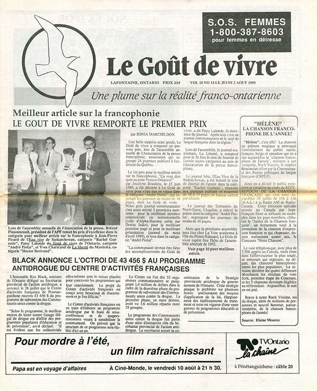Le Goût de vivre (Vol.18 No.15) – 2 août 1990