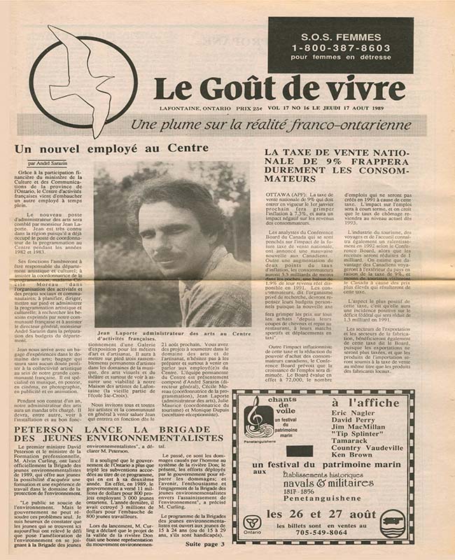 Le Goût de vivre (Vol.17 No.16) – 17 août 1989