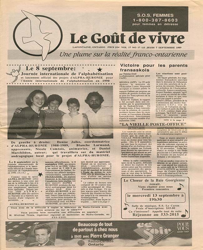 Le Goût de vivre (Vol.17 No.17) – 7 septembre 1989