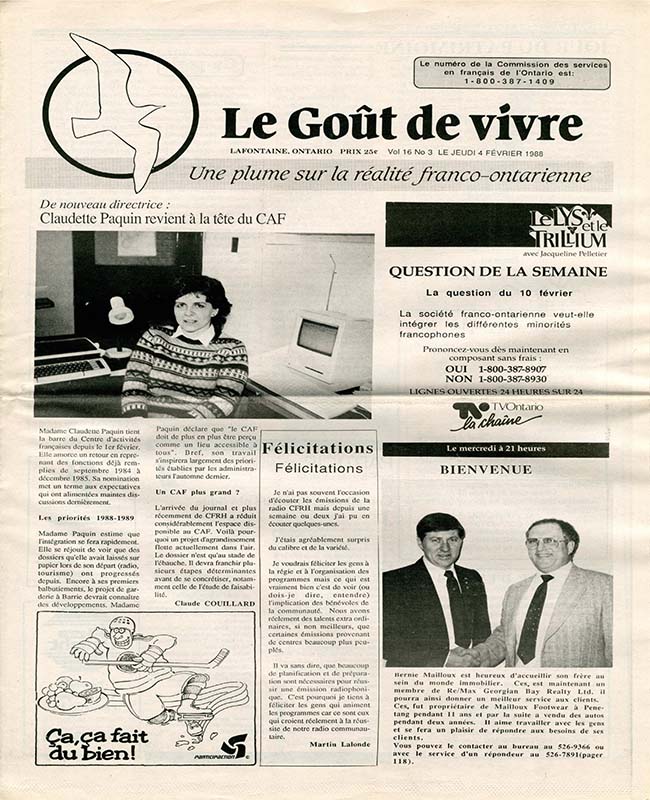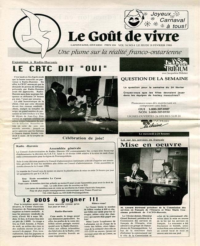 Le Goût de vivre (Vol.16 No.04) – 18 février 1988