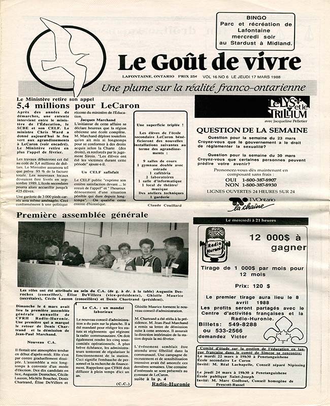 Le Goût de vivre (Vol.16 No.06) – 17 mars 1988