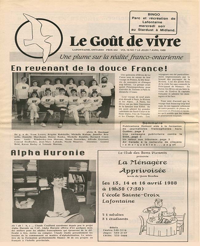 Le Goût de vivre (Vol.16 No.07) – 7 avril 1988