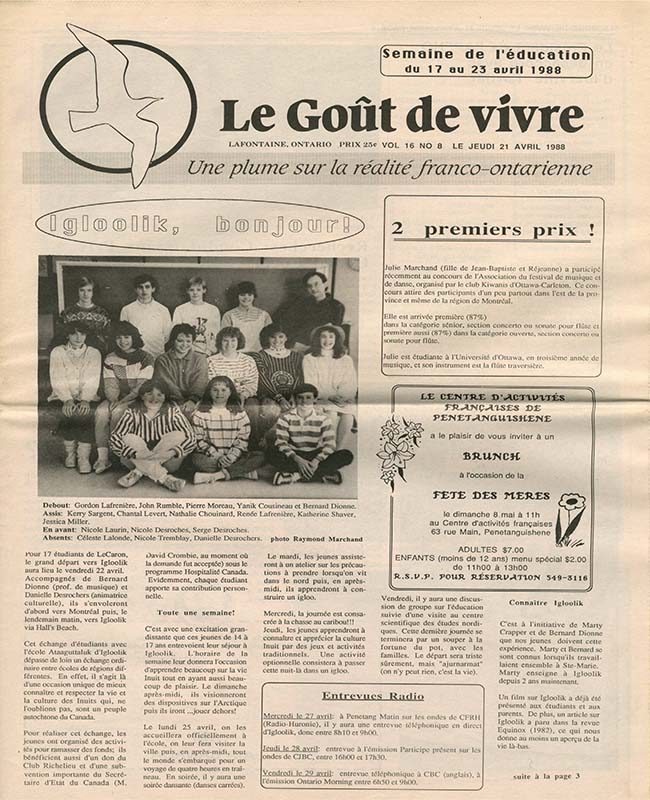 Le Goût de vivre (Vol.16 No.08) – 21 avril 1988