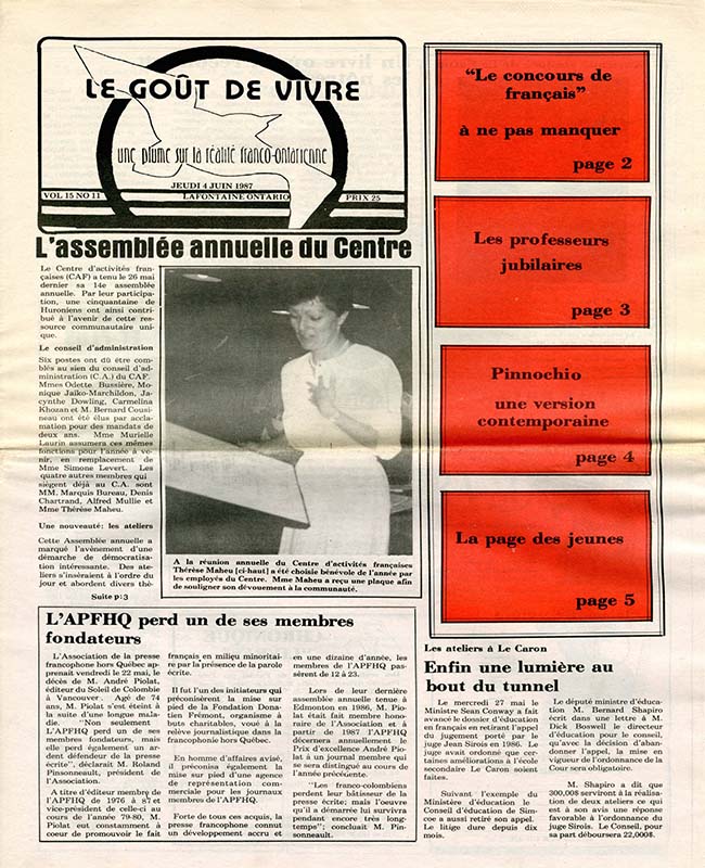 Le Goût de vivre (Vol.15 No.11) – 4 juin 1987
