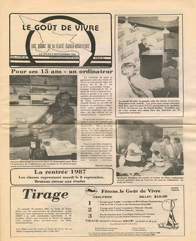 Le Goût de vivre (Vol.15 No.14) – 16 juillet 1987