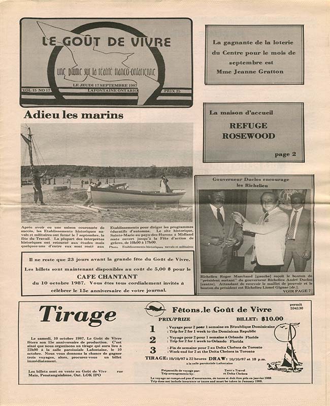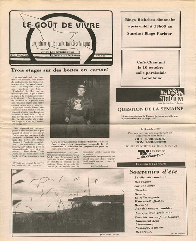 Le Goût de vivre (Vol.15 No.18) – 17 septembre 1987