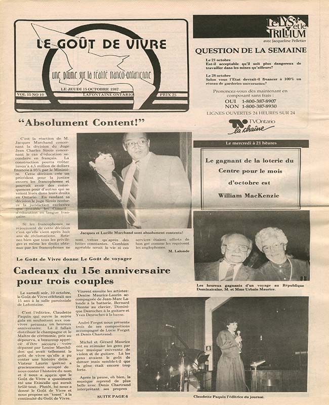 Le Goût de vivre (Vol.15 No.19) – 1 octobre 1987