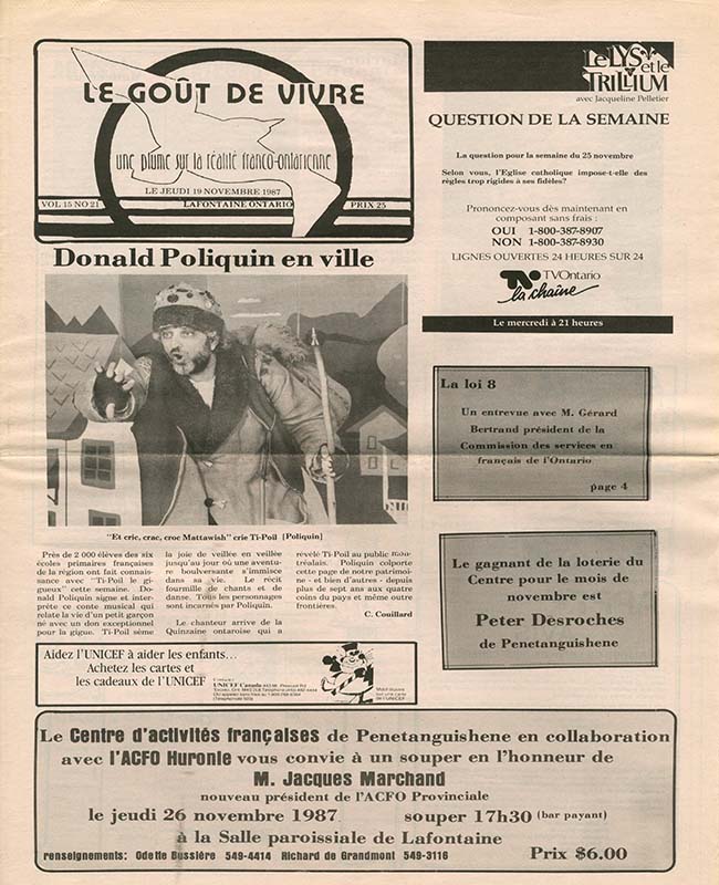 Le Goût de vivre (Vol.15 No.22) – 19 novembre 1987