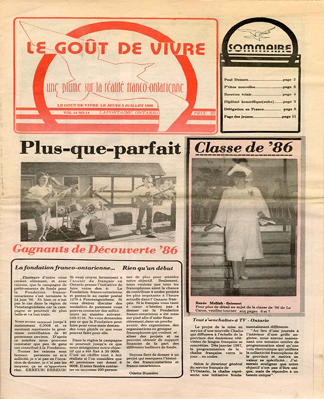 Le Goût de vivre (Vol.14 No.16) – 31 juillet 1986