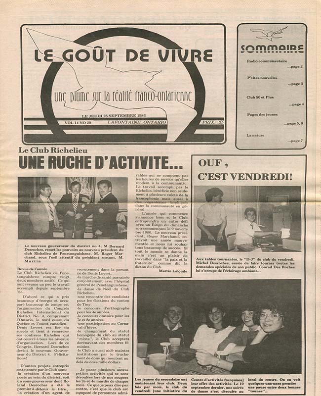 Le Goût de vivre (Vol.14 No.20) – 25 septembre 1986