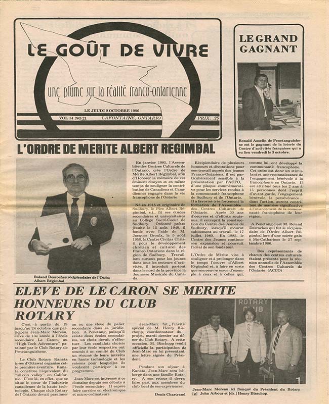Le Goût de vivre (Vol.14 No.21) – 9 octobre 1986