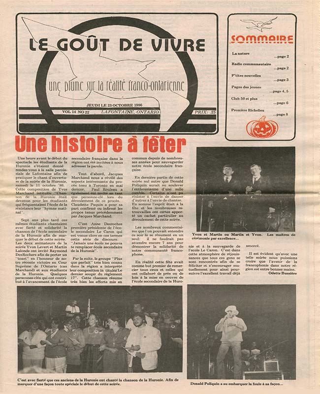 Le Goût de vivre (Vol.14 No.22) – 23 octobre 1986