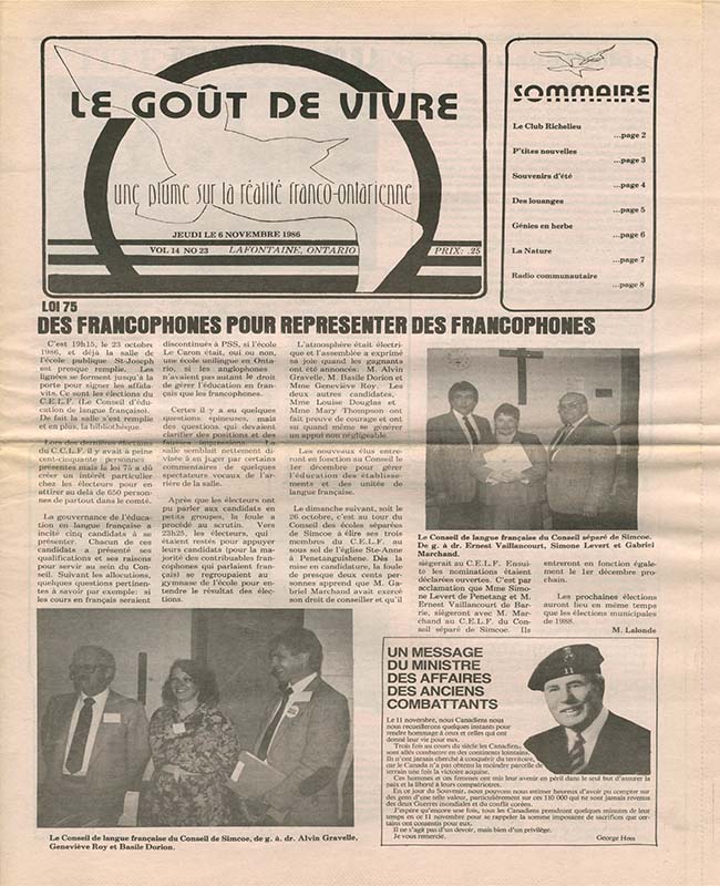 Le Goût de vivre (Vol.14 No.23) – 6 novembre 1986