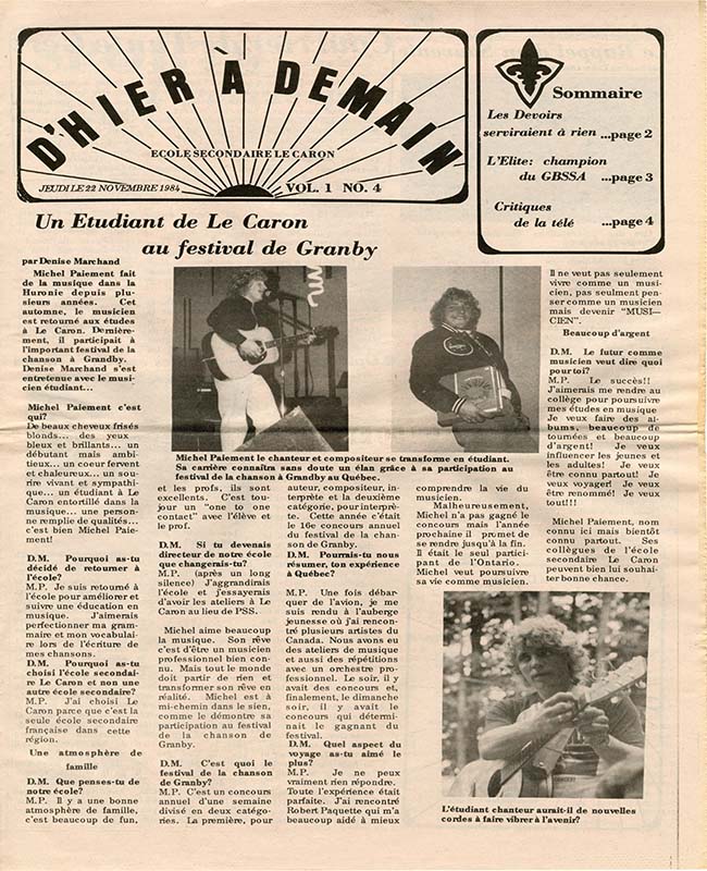 D’hier à demain (Vol.01 No.04) – 22 novembre 1984