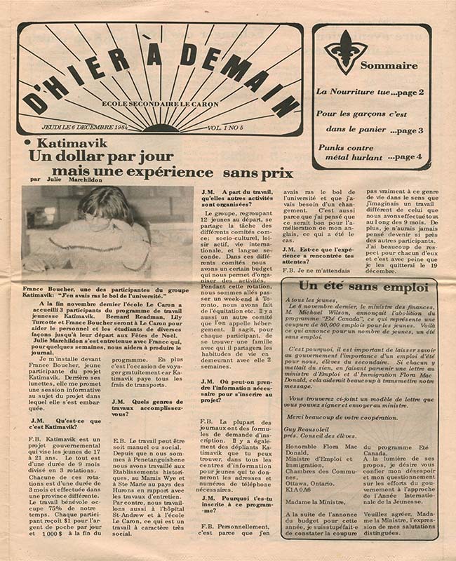 D’hier à demain (Vol.01 No.05) – 6 décembre 1984