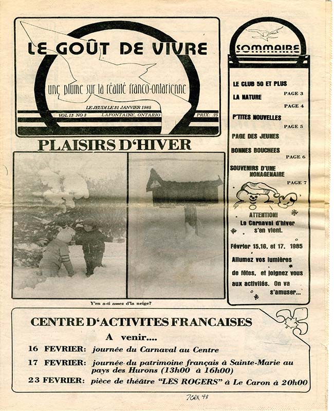 Le Goût de vivre (Vol.13 No.01) – 3 janvier 1985