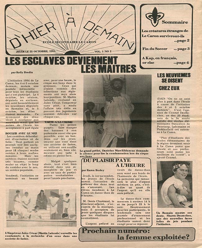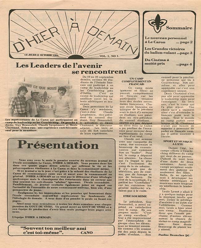 D’hier à demain (Vol.01 No.01) – 11 octobre 1984